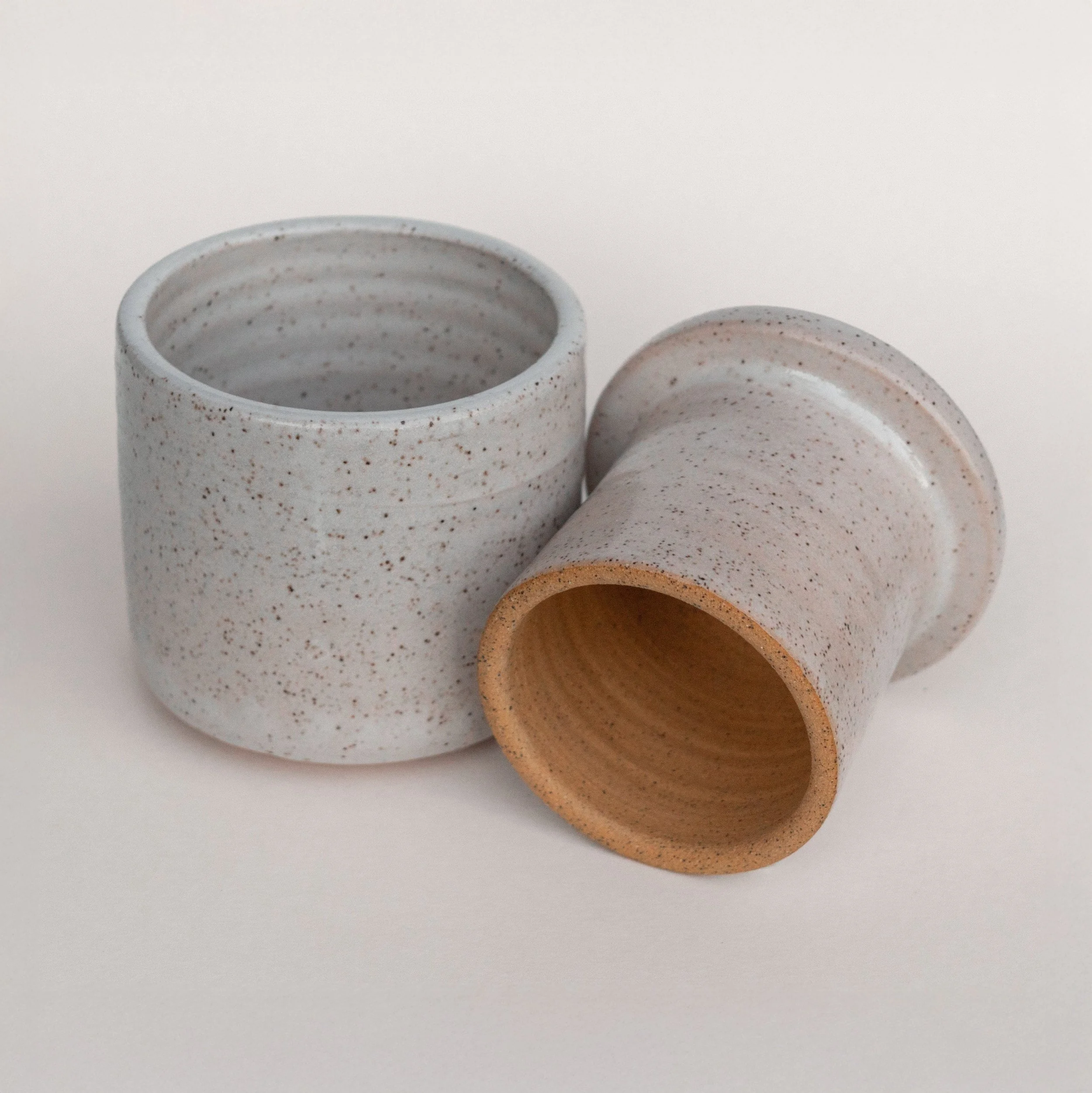 Butter bells truly do it all. Simply put your butter in the “bell” (the part of the lid that hangs down), pour an inch or so of filtered water in the base, and replace the lid. The water creates an airtight seal that keeps the butter fresh and spreadable. Just don’t forget to replace the water every few days!