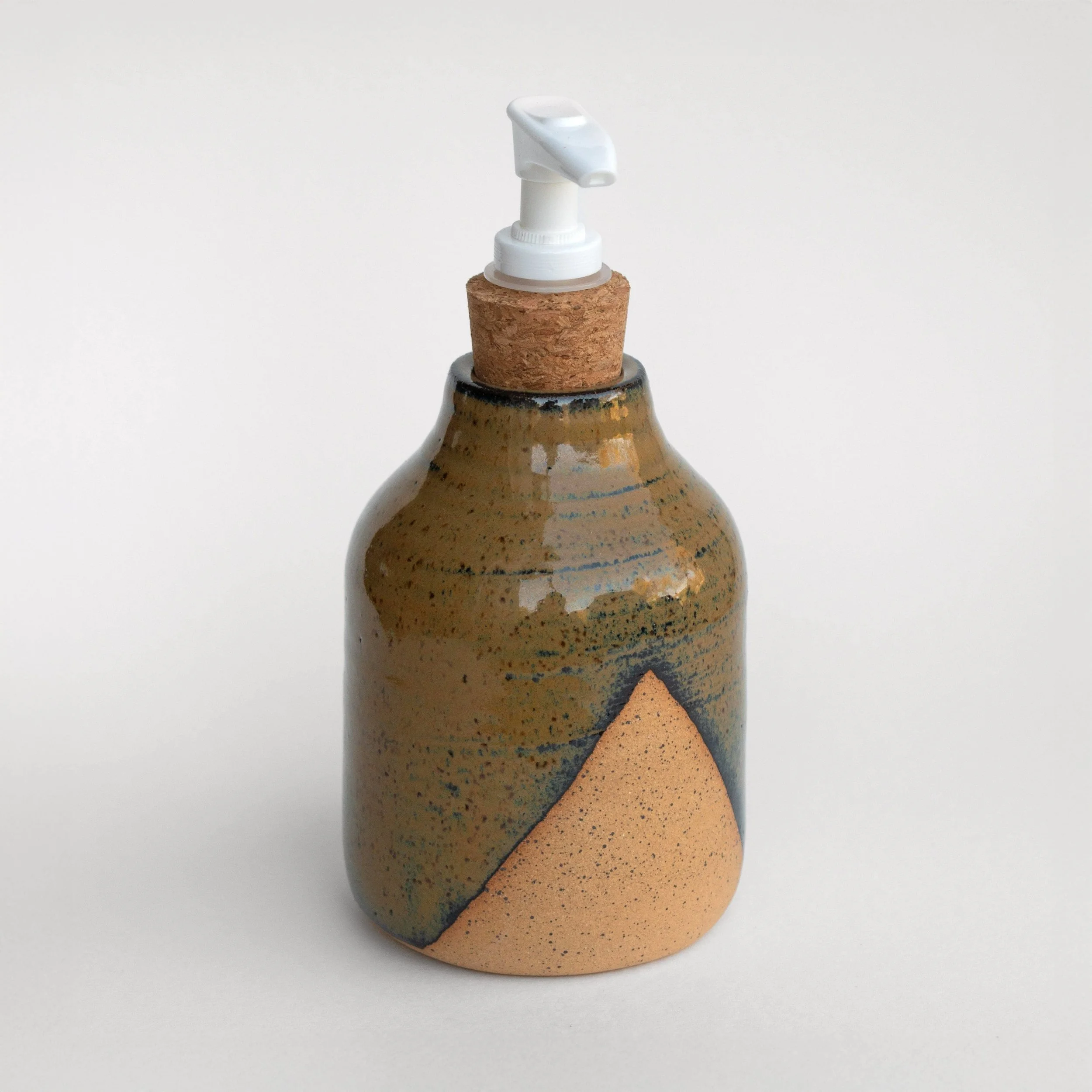 This butter bell is glazed in a seafoam green glaze, measures about 3 ½ wide by 4” tall, and its bell holds about 7.5 oz.